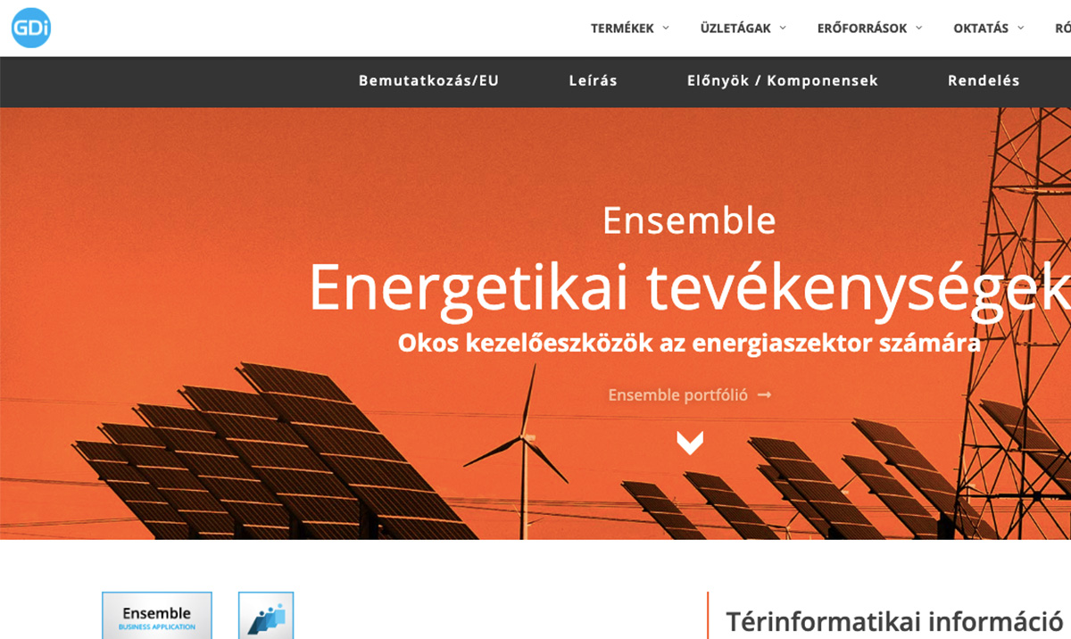 A GDi egy nemzetközileg elismert több mint 30 éve piaci szereplő vállalat a szoftver és felhőalapú megoldások számos területén. A weboldal, ahogy a cég tevékenységei is szerteágazóak: sok egyedi design elem megvalósításával a vállalati arculat alapján készült.